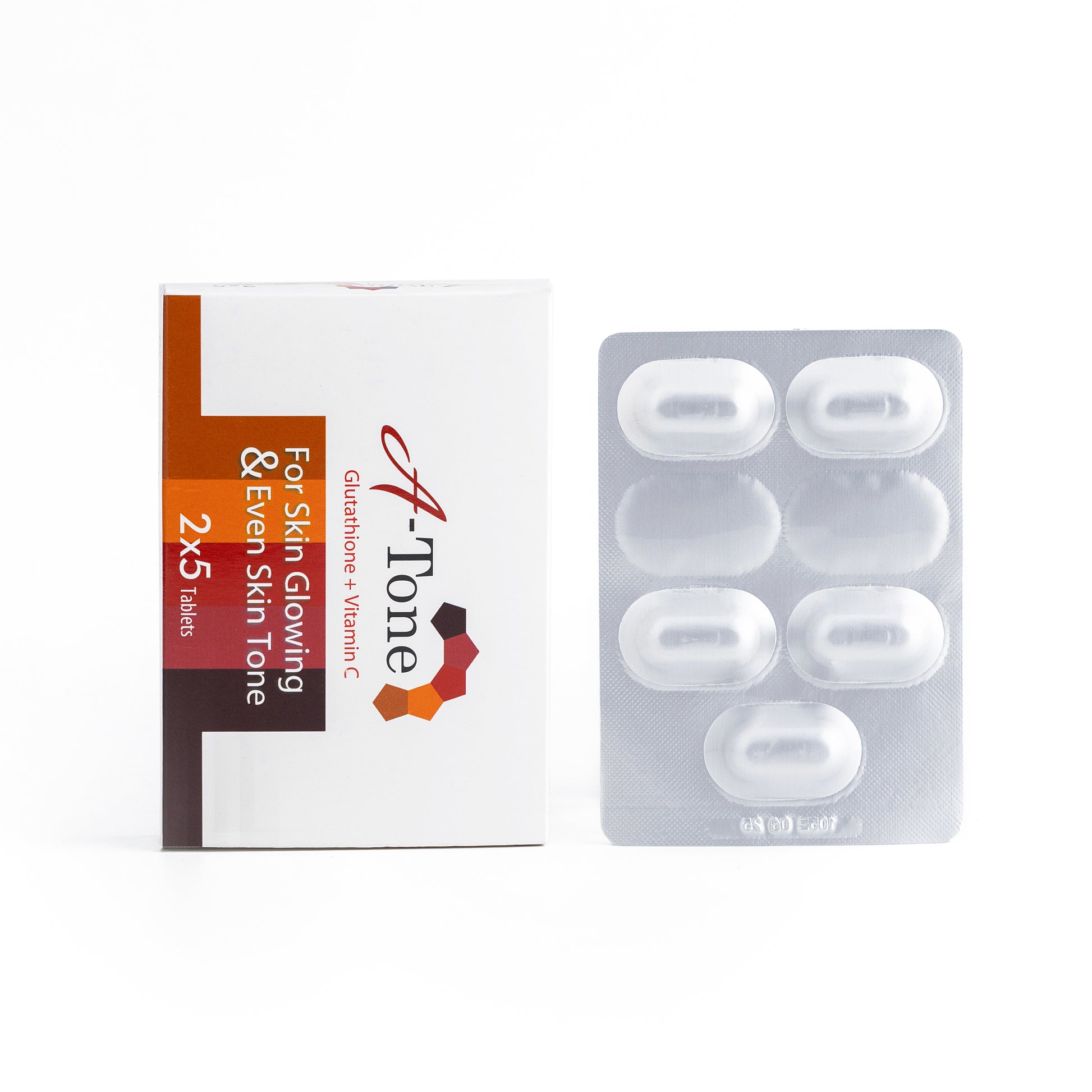 A-Tone Tablets offer the same powerful combination of glutathione and vitamin E as our popular A-Tone Cream, now in convenient tablet form. This advanced formula is designed to promote skin brightening and rejuvenation from within, giving you a radiant, even-toned complexion.